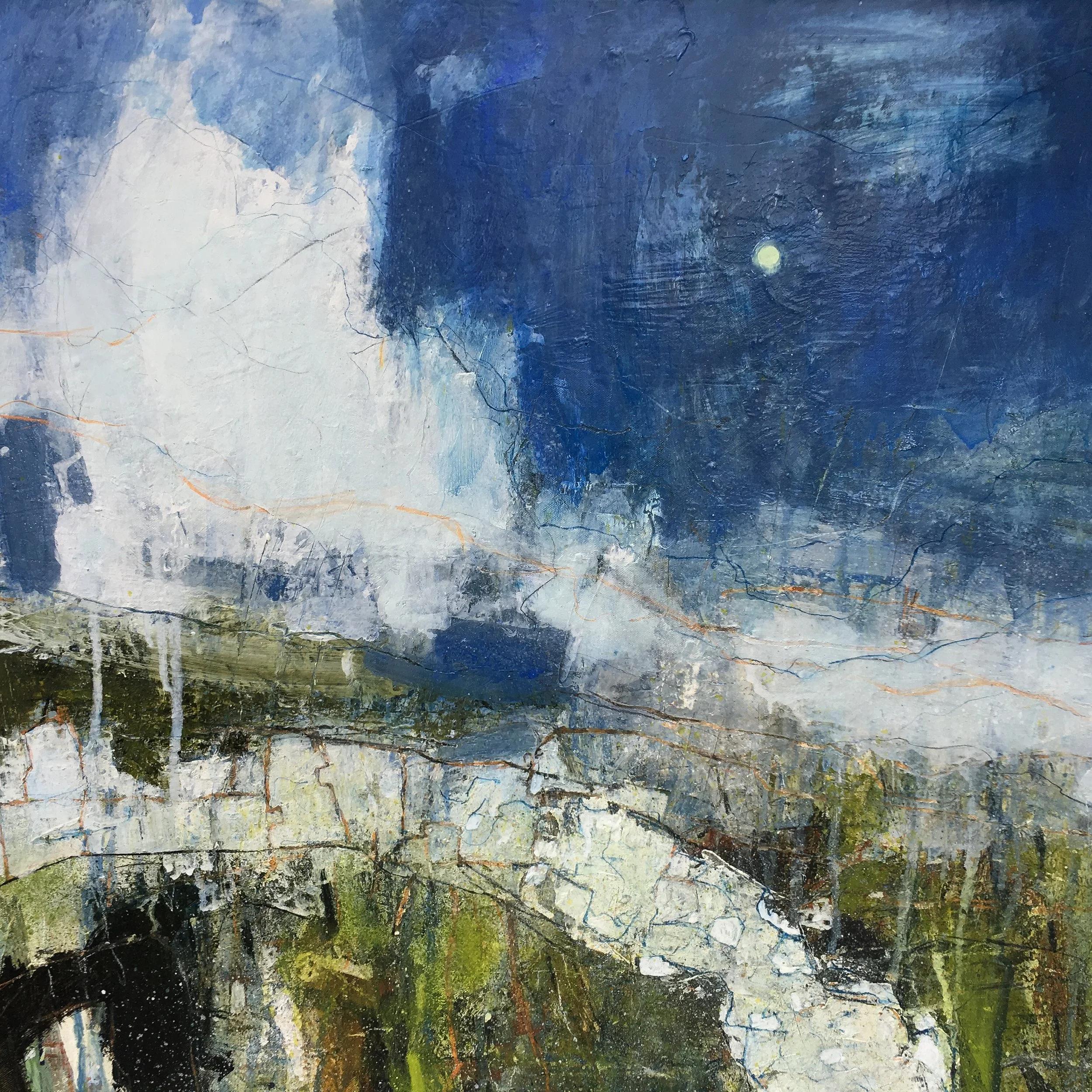 Afternoon Moon 56x56cm acrylic & mixed media on watercolour paper